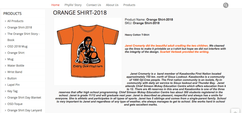 The origin of Orange Shirt Day is based on Phyllis Webstad’s story of having her new orange shirt that her grandmother bought her taken away on her first day at Residential School. It was replaced by the school uniform. Read Phyllis Webstad’s story.